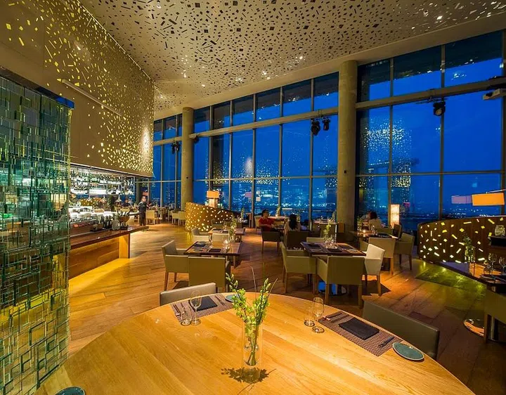 AMBIENCE: Located at the 19th floor of the OUE Bayfront Building, Me@OUE offers a spectacular view of the Marina Bay area thanks to its floor-to-ceiling windows. Visit just before sunset, when the light catches the surfaces of the neighbouring buildings and the amber hues cast a warm, romantic glow in the space.