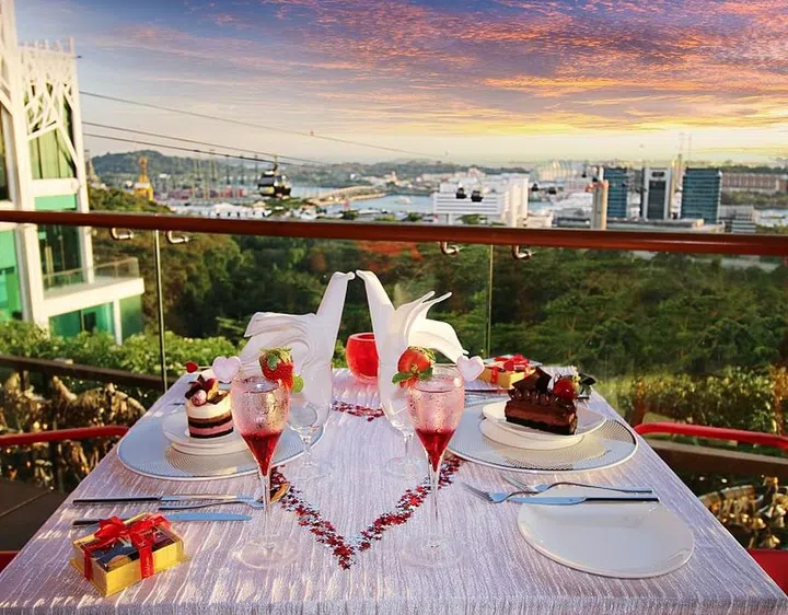 AMBIENCE: Set amidst verdant greenery with postcard views of cable cars in the background, the restaurant has both indoor and al fresco dining options. There’s also the option to enjoy a romantic post-dinner walk around Mount Faber.