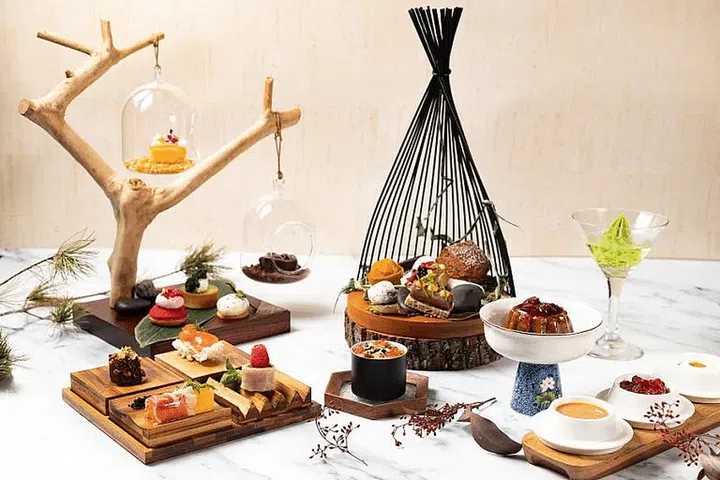 Its afternoon tea draws on nature, with delectable bites served across five courses and with tea pairings. Make your way through a Foie Gras Rocher dressed with candied fruits, Valrhona chocolate and nuts, a Jamon Iberico De Bellota with compressed cantaloupe, a Smoked Duck Rice Paper Roll and a smashed avo sourdough.