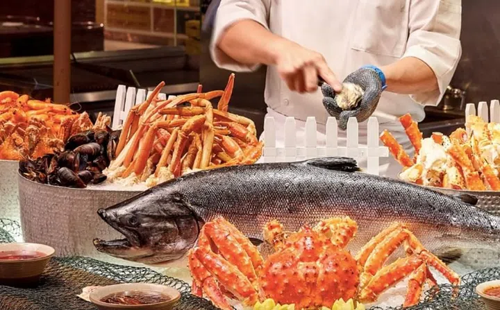 If you’re looking for something a little less budget and a little more bougie, here’s the buffet for you. The expected damage for a weekday lunch is $55+, while dinners will cost you around $78+ (Monday and Tuesday) or $88+ (Wednesday to Sunday). Here, with seven open kitchens and a variety of local and Pacific Rim dishes, you’ll be spoilt for choice. They offer different spreads on different days and timings, so be sure to do your research beforehand.