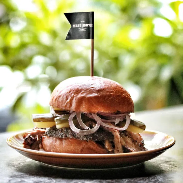 The Full Metal Smokehouse delivers American barbeque without compromise, fired in-house in its specially imported smoker. No meal at the meat joint is complete without a taste of their deliciously smoky beef brisket - which is great, because they’re also offering it in burger form. Picture fall-apart tender brisket nestled between potato buns accompanied by tangy red onions and pickles. You also can’t miss the beef marmalade burger, a collaboration with another place on our list, Burnt Ends. Expect a brisket patty paired with a dulcet caramelised onion-infused beef patty topped with American cheese and house sauce for a rib-sticking meal that’s worth every additional stay-at-home workout.