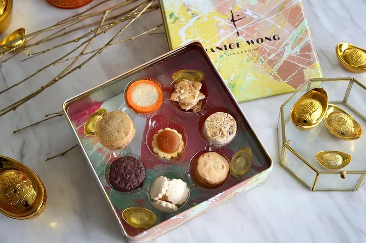 Janice Wong’s newly-launched collection of festive confections, hampers and cookie sets offers many tantalising choices. In particular, we're tempted by the CNY Assorted Cookie Tin ($38) that features a selection of handcrafted, small-batch cookies, including Almond Orange Marzipan, Almond Cookie and Peanut Butter Brittle. The cookies come in a signature Janice Wong Tin with artwork on the exterior by chef Janice herself.