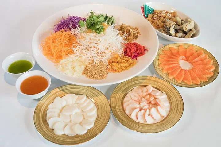 Kickstart the reunion meal at home by tossing up an indulgent yusheng from The Mandarin Oriental Shop Singapore.