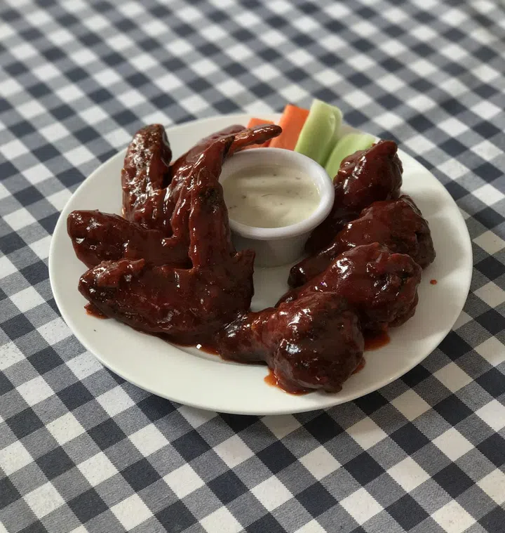 Buffalo chicken wings are a specialty item at Jerry’s. The large wings are fried till they’re crunchy and golden, and then tossed in a spicy sauce that varies from L1 Smokin’ to L6 Jerry’s Insanity 6x. The higher the level, the spicier the sauce, so, order at your own risk! If you prefer your fried chicken plain, Jerry’s serves un-sauced Crispy Chicken Wings, too.