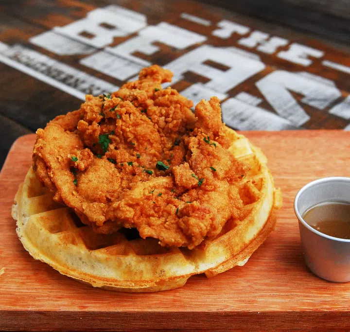 There’s no need to travel to the American south for buttermilk-fried chicken. You can get a taste of it at The Beast, which is dedicated to classic, home-style southern dishes, from corn bread and country fried steak to mac and cheese and pulled pork hash. The brunch menu stars a couple of fried chicken favourites: we recommend the Chicken & Waffles, which features a boneless chicken thigh that has been brined for 24 hours and deep-fried, served atop a crisp waffle and drizzled with a smooth bourbon-maple sauce. For something more substantial, try The Homestyle Classic – southern fried chicken served with eggs, bacon, fries, country gravy and pimento cheese.
