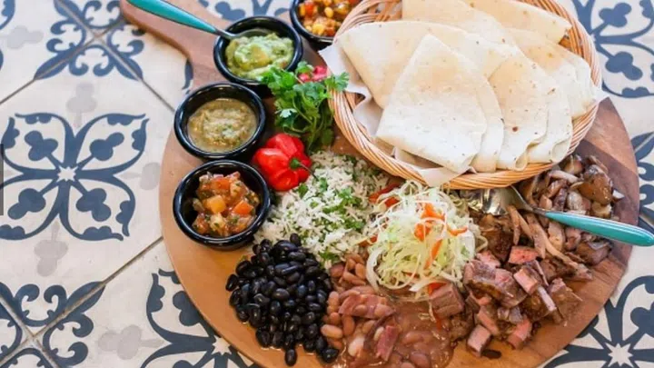 Try the Ancho Pulled Pork, filled with fresh guacamole, cilantro rice, refried black beans, sambal mayo salsa or savour one of the restaurant's tequila and mezcal handpicked tasting flights.