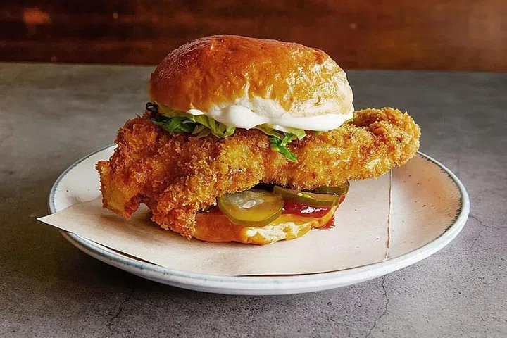 The Fried Chicken Sandwich I try has a large piece of crispy fillet stretching out of the bun. Pickles and lettuce leaves cut the grease, while Japanese mayo and a housemade sauce keep the sandwich moist.