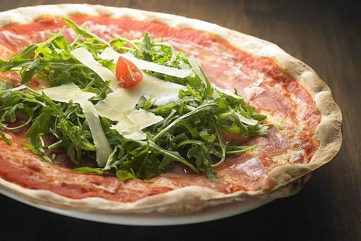 There is no stinting on ingredients. The Prosciutto E Rucola pizza ($24.50) comes almost completely covered with slices of Parma ham and topped with shaved parmesan cheese and rocket leaves.