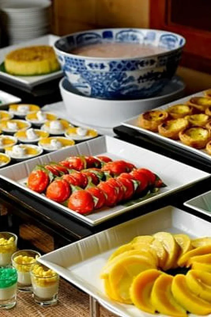 The buffet spread at The Landmark spans Asian, Mediterranean and Western cuisines and includes more than 35 dishes. For mains, choose from dishes like ayam masak merah, chicken char siew, sambal lala, butter chicken, black pepper crab, ikan berlado and beef stew. There are also live cooking stations where you can order satay, pizza and roast beef, and different types of rice dishes, including chicken and mutton biryani. The desserts are to-die-for, with a selection including gulab jamun, honeydew sago, cheng tng, mango pudding, Malay kueh, and sago gula melaka. Price per adult: From $35++.