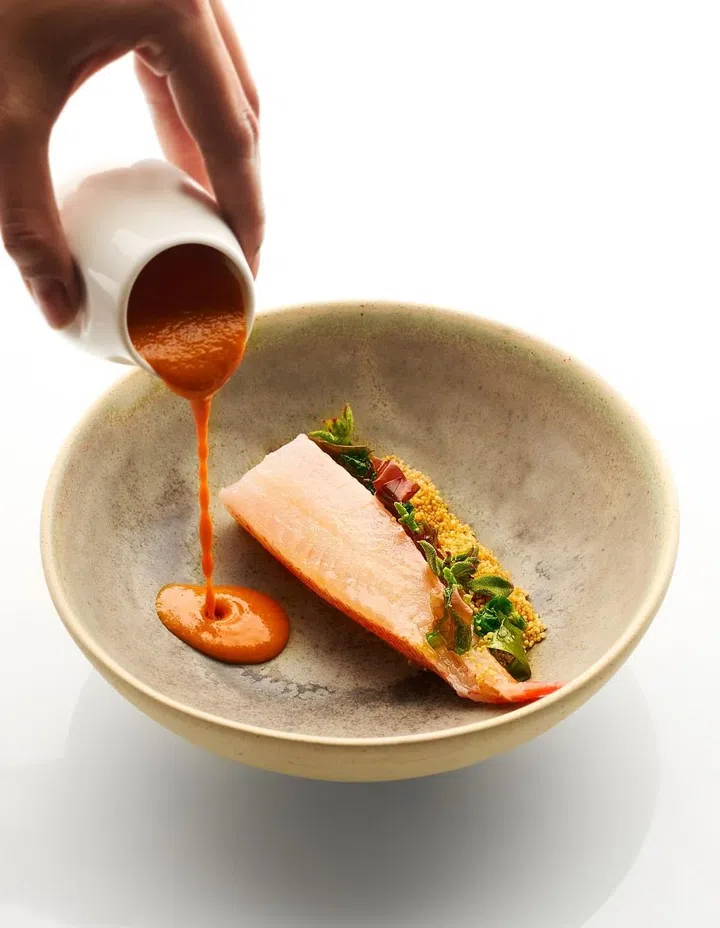 Interestingly, there are some similarities in the flavours and textures of Chilean and Southeast Asian cuisine, most notably in the Moqueca, a dish inspired by a traditional Brazilian stew. Served in a rich, fragrant sauce simmered for over 12 hours with fish bones, coconut milk and palm kernel oil, it reminds one of laksa or Nonya curry.