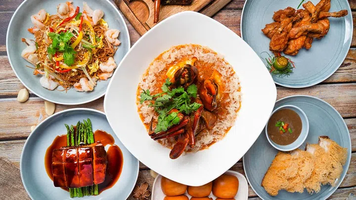 If you're stumped on what to order, you won't go wrong with the menu's signature dishes. Think: lemongrass prawn sticks dressed in spicy citrus sauce, chilli pomelo crab served with spicy sauce that's made up of a concoction of herbs and spices, smoked honey-glazed kurobuta pork ribs, and Sichuan-style prawns.