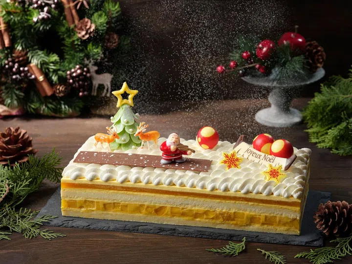 For serious yuzu lovers only, the Feliz Yuzu Royaltine consists of two layers of crispy feuilletine, yuzu chocolate mousse, yuzu mousse, chocolate sponge cake and sprinkled with gold dust for a complete Christmas look.