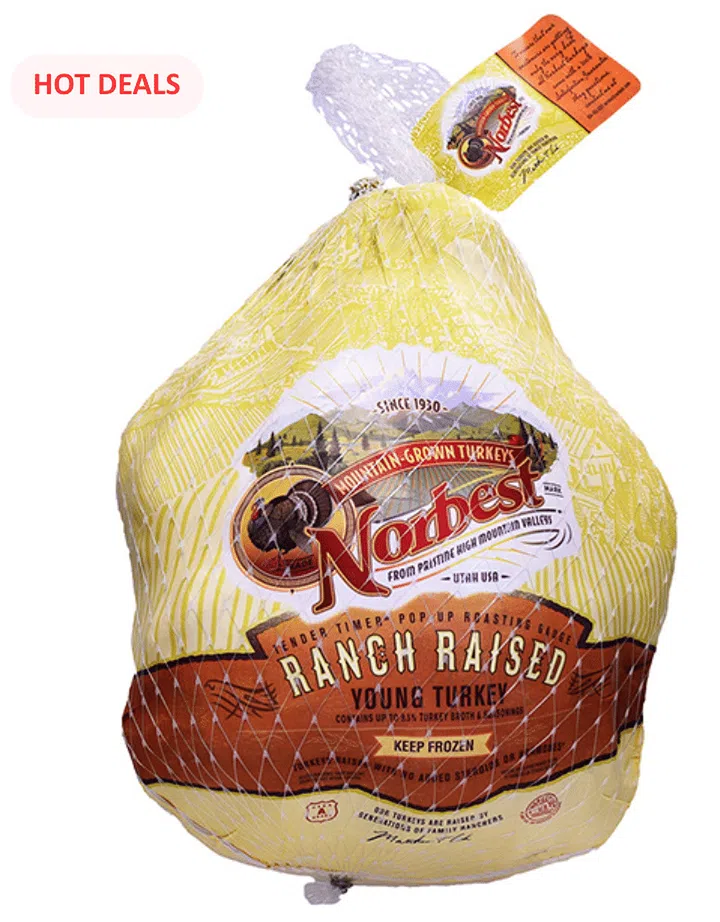 Norbest, seasoned: $69.90 each (approximately 4.5kg to 5.5kg before roasting)