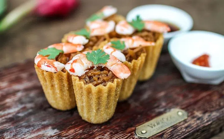 You can dapau local favourites exclusive to each Violet Oon restaurant, such as the satay from Violet Oon Satay Bar & Grill, and the Pepper Prawn Pasta from Violet Oon Singapore at ION Orchard.