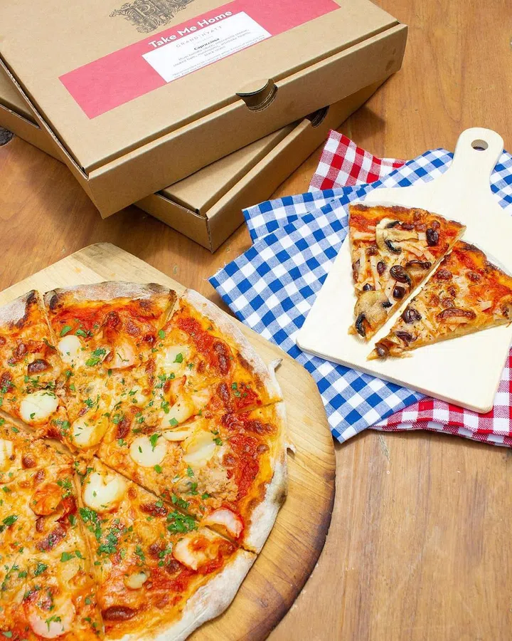 Grand Hyatt has also created $10 takeaway meals called "Meal in a Box, Wellness on the Go", but delivers only within a 4km radius and with a minimum of 20 orders.