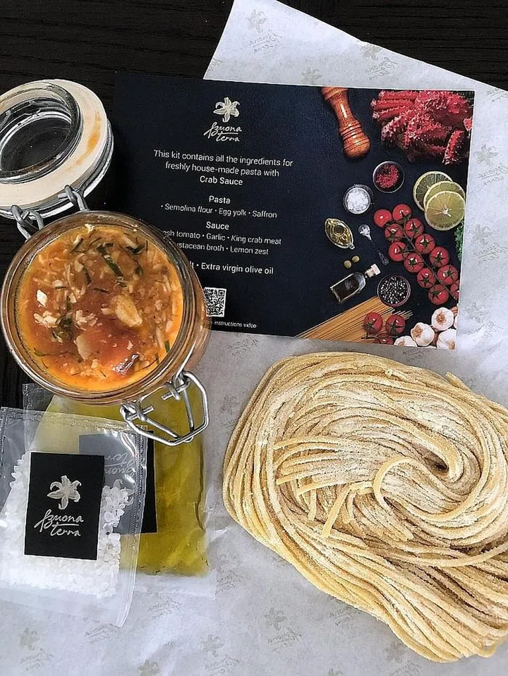 Each customisable kit ($32 to $38, depending on sauce) comes with fresh housemade pasta of your choice wrapped in paper, your chosen sauce in a glass container, as well as small bags of rock salt and extra virgin olive oil. What sets this restaurant’s meal kits apart is that each kit comes with a card listing the ingredients and a QR code. Scan the code to view an instructional video by chef Denis Lucchi, so you don’t have to worry about messing up.