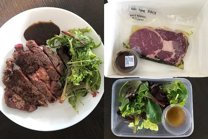 eVeL33 has a big range of DIY kits separated into meats, seafood, pastas and salads. Consider their Steak with Pepper Sauce Kit ($18), which includes a 200g piece of raw steak marinated with soya sauce and koji paste in a sealed bag (choice of sirloin, ribeye or tenderloin), black pepper sauce, mixed salad and balsamic dressing.