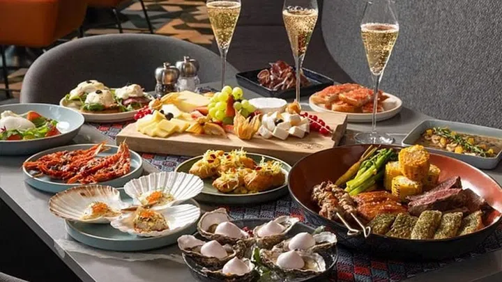 Get the ball rolling with a feast of seafood on ice, fresh seafood on ice, cheese and charcuterie, cold plates and classics like Sustainable Smoked Salmon and Spinach Quiche, Burgundy Braised Oxtail Pie, and Lobster & Prawn Mac and Cheese. There are also charcoal grilled delights for meat lovers like New Zealand Coastal lamb chops, Great Southern Pinnacle beef flank steak, and artisan butcher sausages. For Asian flavours, check out the dim sum, including a wok-fried carrot cake.