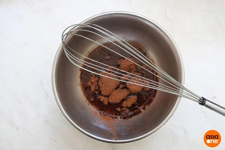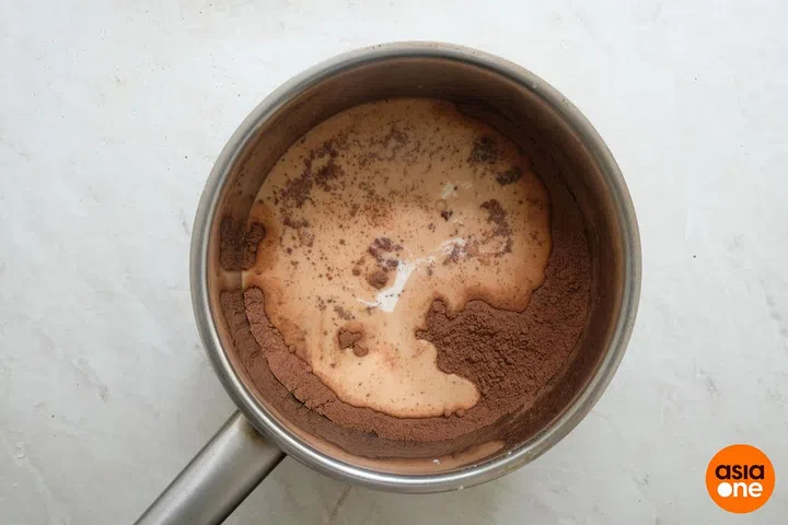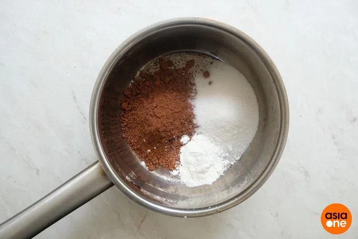 1. Place cocoa powder, corn flour, caster sugar and salt into a saucepan and stir well.