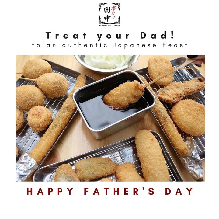 Between June 17 and 24, you and dad can enjoy a Kushikatsu and Otsumami set, and two cans of kaku highball (160ml) at $34+ (U.P. $37.6). A Family Set plus four kaku highball cans is $68+ (U.P. $85.2).