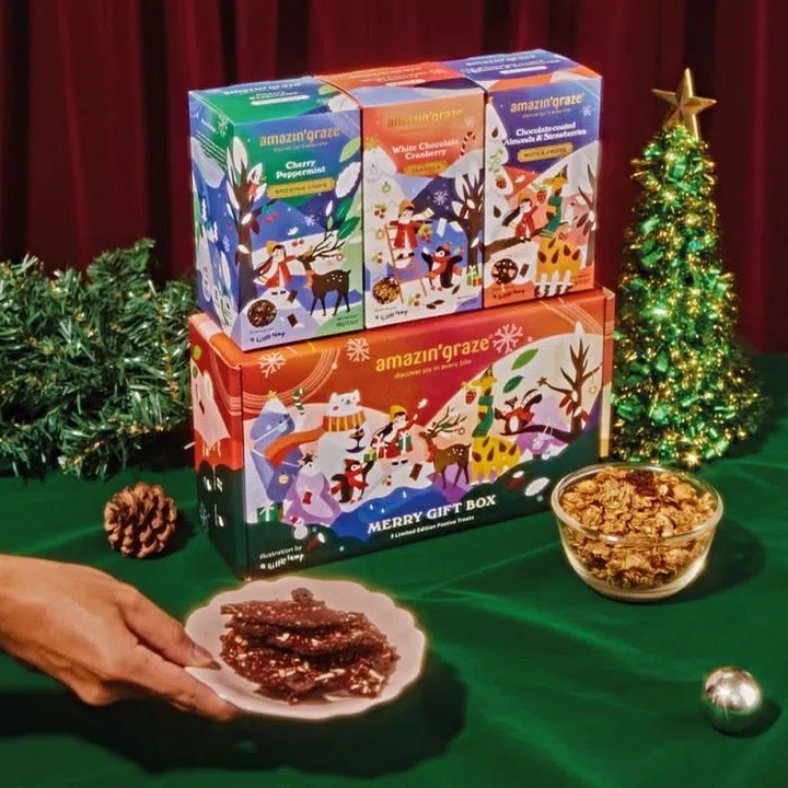 Healthy snacking gets a festive spin with the holiday collection from Amazin’ Graze.