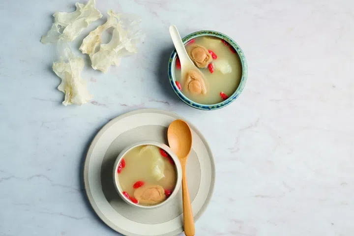 Fish maw – animal bone or skin – is known to be high in collagen, and is loved as an ingredient in soups. Unlike bone broth, which is mainly made by simmering bones, ligaments and tendons, collagen is extracted from more parts of the whole animal, such as feet and skin.