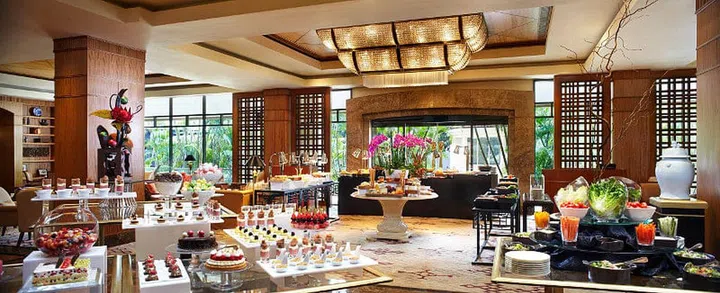 First off, their buffet selection of scones is reason enough to visit, and so is the waffles and crepes station that whips these up a la minute. But don't fill up on the scones alone (although it is hard not to if the truffle scone is on offer). Focus first on the silver tiered stand laden with treats like the duck and foie gras profiteroles, and creme caramel with orange compote. Once you are done devouring everything on it, head back to the buffet for more: Puffs, pastries, mini quiche, sushi and an extensive selection of bite-sized confections. A selection of fine teas is available, among which the St. Regis blend – with notes of white chocolate, nuts, white rose and jasmine – makes for a delightful cuppa to pair your meal with.