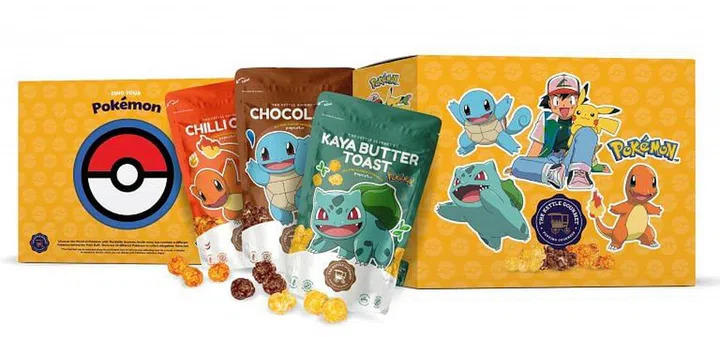The Singapore-based popcorn brand has given its usual packaging a makeover, replacing the usual snack monsters with iconic Pokemon characters: Charmander, Bulbasaur, and Squirtle.