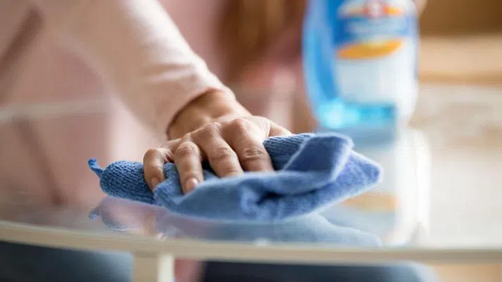 Wet wipes are handy for cleaning tables (and sticky toddler hands) but they don’t contain enough alcohol to kill the virus.