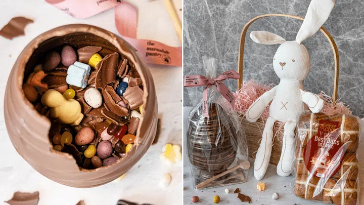 You can also shop the Easter Bunny’s Joyful Basket ($88+), an online exclusive that comprises a Cracking Surprises Easter Egg, six pieces of Baker and Cook’s Hot Cross Buns, and a bunny soft toy in colours of either white, pink, yellow, or blue. The Marmalade Pantry will be donating $1 to the Breast Cancer Foundation with every purchase of basket.