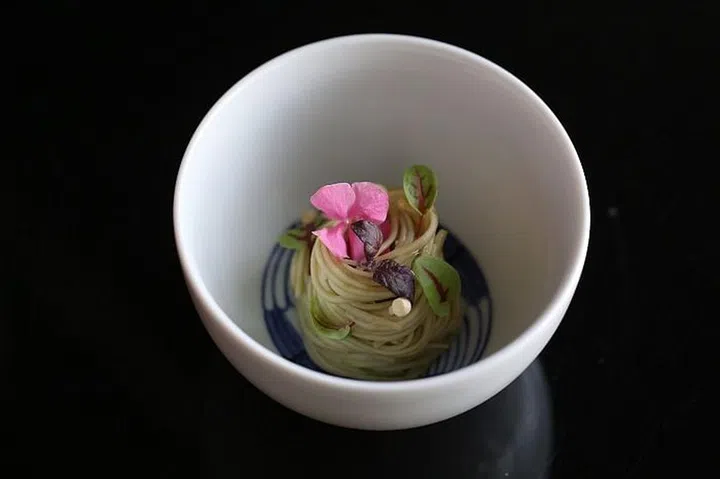 Featuring an exquisite assembly of sweet and salty tastes, it takes Japanese and Asian flavours and techniques on a modern and playful spin: Think miso pork and chicken dumplings wrapped like a candy bun in a homemade red and white skin.