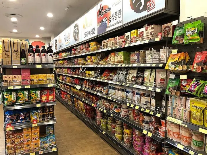 The famous samyang fire noodles are $6.90 for a pack of five, and you can find lots of Korean chips and crackers for under $2 per pack.