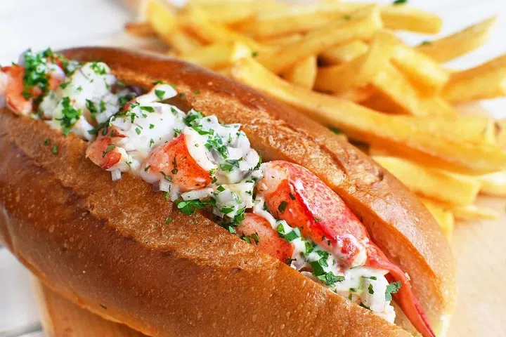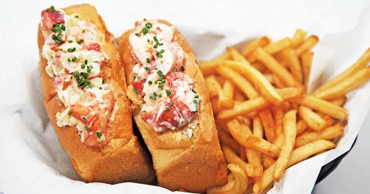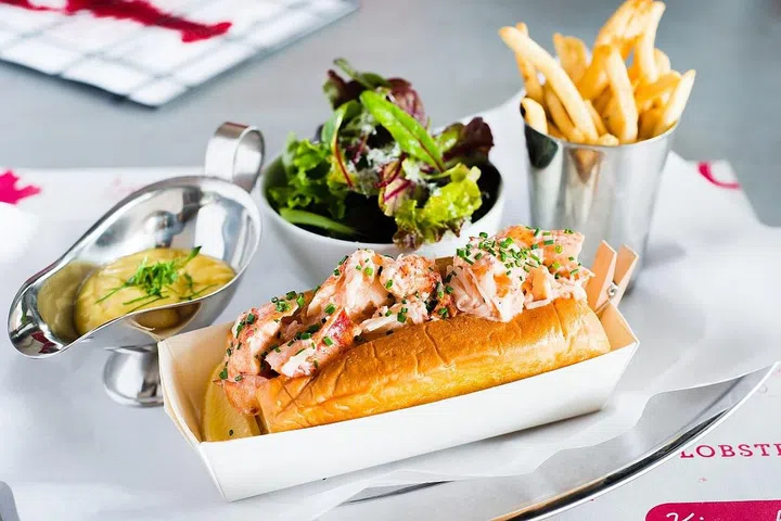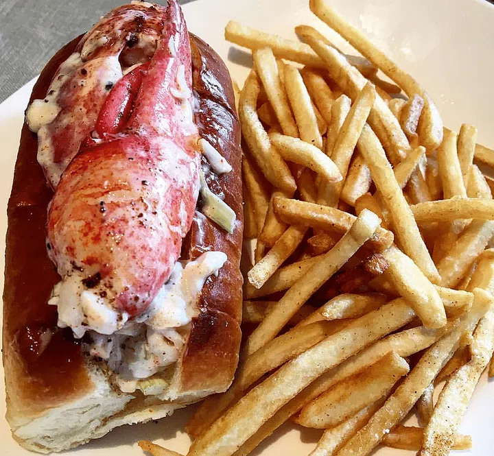Here, lobster is poached in butter, and tossed in a light mayonnaise dressing. It comes in a brioche bun and a side of truffle fries.