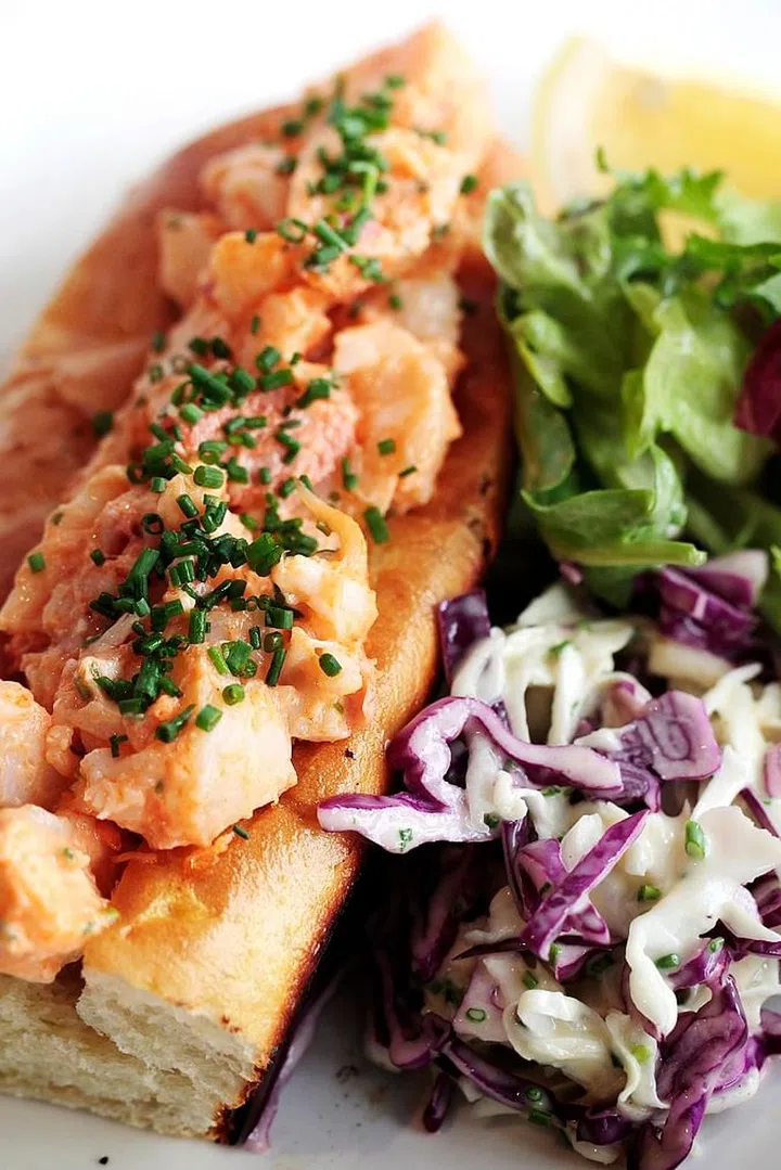 The buns are served warm and filled with a cool lobster filling with a hint of lemon.