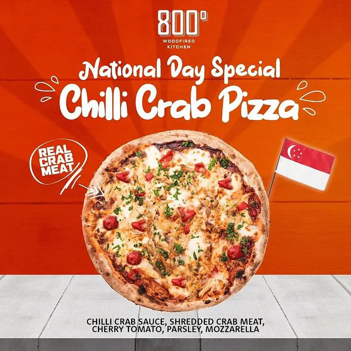 Woodfired pizzas meet chilli crab over at 800 Degrees Woodfired Kitchen, which is serving up a National Day Special Chilli Crab Pizza (10” and 14”) that’s topped with real crab meat chunks, cherry tomatoes, parsley, mozzarella, and drizzled with lashings of punchy chilli crab sauce.