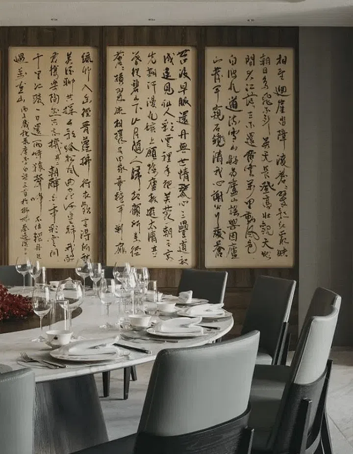 The comfortable space provides more than a mere private dining experience, as it is sumptuously appointed with artistic savoir-faire in the form of a 20-panel calligraphy oeuvre — aptly celebrating conviviality, feasting, and imbibing — by the late Chua Ek Kay, winner of Singapore’s apex art prize, the Cultural Medallion.