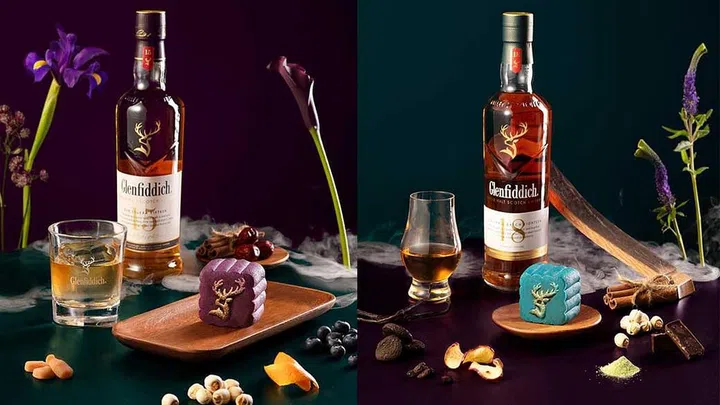 Scotch whisky brand, Glenfiddich — known for its single-malt whiskies — has partnered with Chinese restaurant Hai Tien Lo at Pan Pacific Singapore to offer two different alcoholic snow skin mooncakes for the Mid-Autumn Festival.