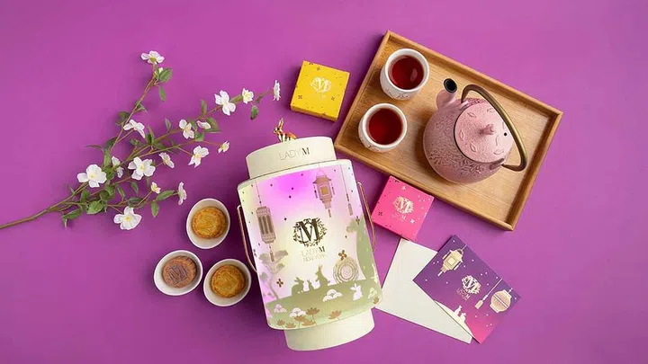 Within the set, you'll find a tower of six Lady M's famous miniature mooncakes (2 Earl Grey, 2 Caramel Coffee, 2 Purple Yam), made in collaboration with Kee Wah Bakery.
