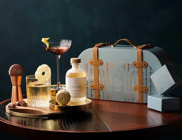 They’re beautifully presented in a blue luggage case-inspired box, which nods to the spirit of train travel and Origin Bar’s concept of taking guests on a journey of discovery.