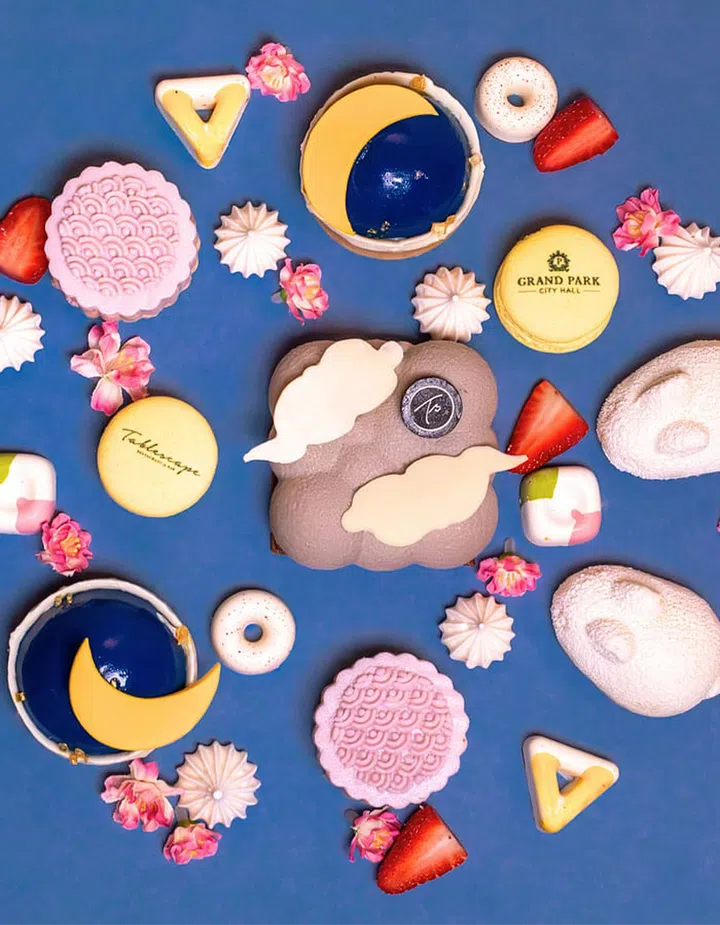 Inspired by festival street food profiles and shifting away from the traditional golden-brown crust, the Japan-Inspired Baked Mooncakes offer a modern twist with flavours like Kuromitsu Sea Salt, Kinako Macadamia, Raspberry Almond, and Pistachio with green tea bean paste.