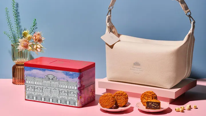Enhance your gifting with The Fullerton 15 Treasures Premium Gift Set, featuring a large baked mooncake that symbolises the full moon, encircled by 14 smaller mooncakes in various flavours. Alternatively, celebrate The Fullerton Bay Hotel's 90th anniversary with The Clifford Pier Mooncake Tingkat, a custom-designed tiffin carrier housing four baked mooncakes reflecting Singapore's hawker cuisine diversity, including Salted Lotus with Hae Bee Hiam and Assam Lotus with Mango.