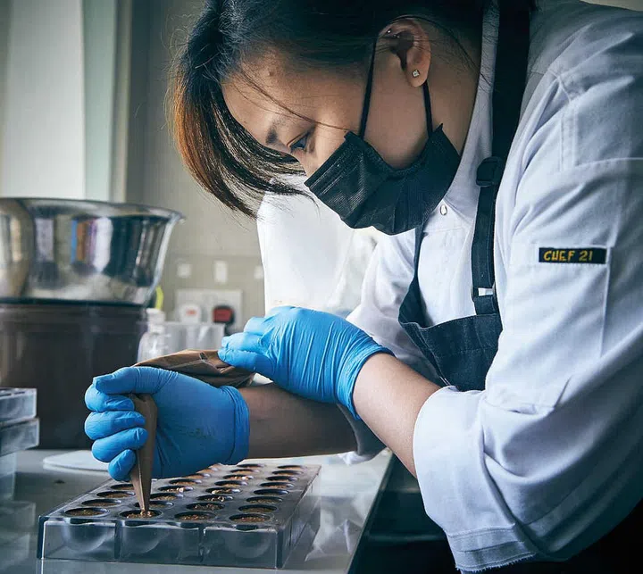 The chocolates at Mr. Bucket Chocolaterie (@mrbucketchocolaterie) are handmade at its store (#01-15, 23 Sin Ming Road) daily, and are available in the form of bonbons, chocolate bars, drinking chocolate and chocolate liqueur. Established by founder Jerome Penafort, who is in his 30s, with head chocolatier Cheri Chen and creative lead Deborah Phan, the business offers artisanal treats and only works with farmers in the region.