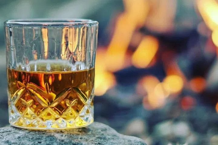 The new year in Scotland involves bonfires, sharing of sweets and a wee dram of whisky (above).