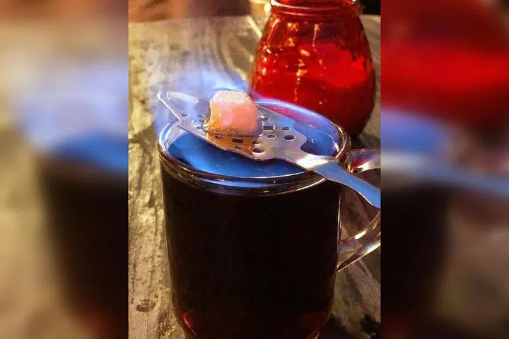 As they sip the drink - which literally translates as "fire tong punch" - old-school revellers hold the fiery sugar cone.
