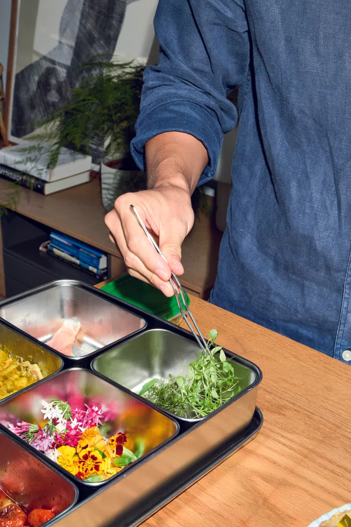 Julien Li garnishes his dishes with the freshest and prettiest edible blooms.
