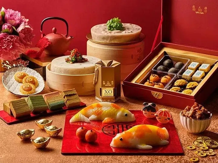 The Fullerton Hotel Singapore has prepared a whole range of traditional cakes and desserts to celebrate the Lunar New Year. These include the rose-scented Rose Water Chestnut Cake ($28.50), the ‘gram-worthy Harmony Koi Fish Osmanthus Nian Gao ($31.50) and Fortune Radish Cake ($28.50).