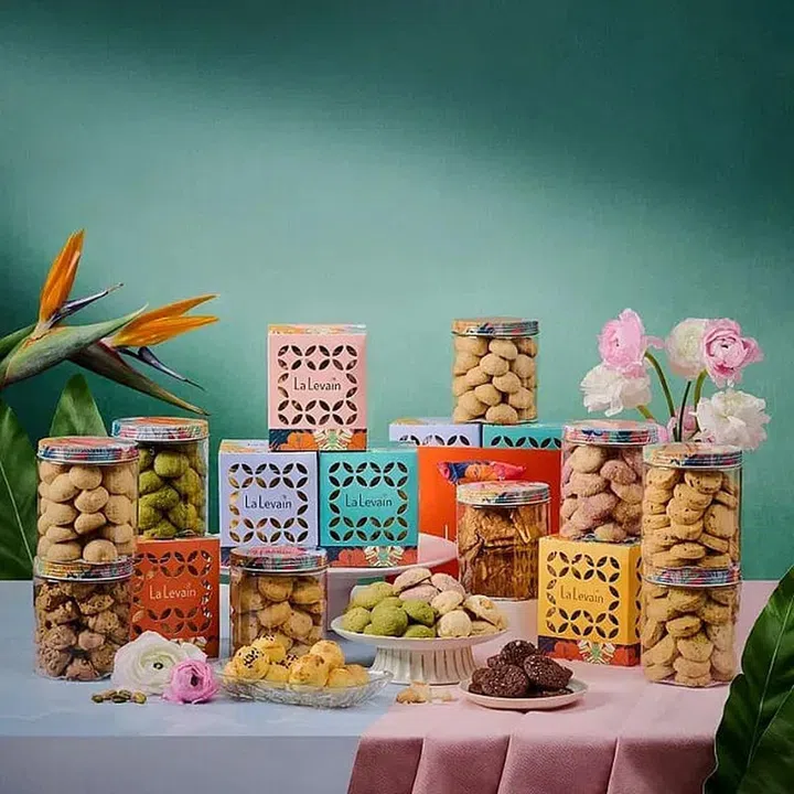 From the artisan bakery cafe La Levain, you’ll get classics with a fresh interpretation. Executive chef and co-founder Wythe Ng has churned out 12 cookie flavours, including unique flavours like Bobochacha Cookies ($24.80), Grade A Uji Matcha German Cookies ($24.80), the Korean-inspired Kim Cheese Cookies ($26.80), and Osmanthus Pineapple Ball ($28.80).