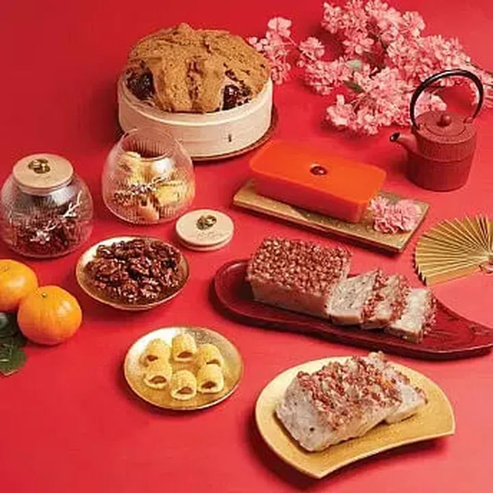 Shangri-La Singapore is adding its own luxurious touch to classic Chinese New Year goodies, like the new Red Date Nian Gao with Bird’s Nest ($58.48), made with premium Xin Jiang red dates for a natural sweetness and luxurious bird’s nest. There’s also the three-layered version made with purple sweet potato and Japanese pumpkin ($35) and the Traditional Nian Gao with Coconut Milk and Brown Sugar. Its popular Radish Cake with Dried Scallop, Dried Shrimp & Preserved Meat is also a must-order.