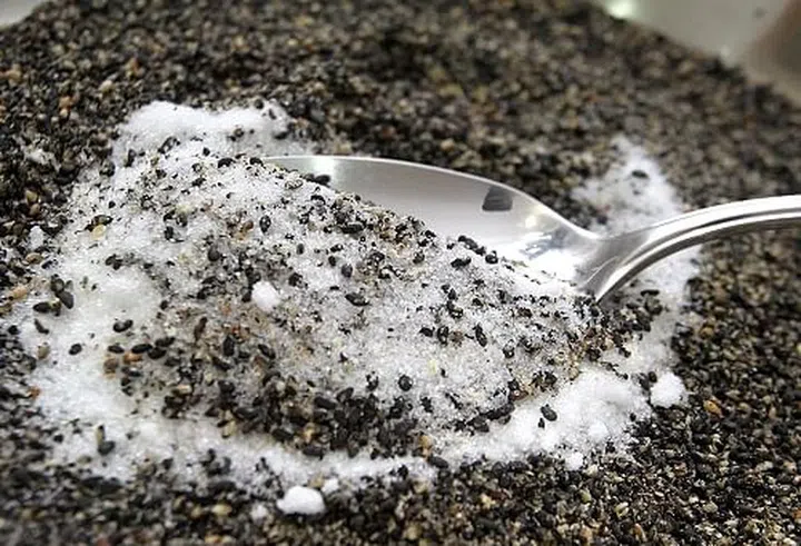 1. Mix the peanut powder, black sesame seeds and sugar.