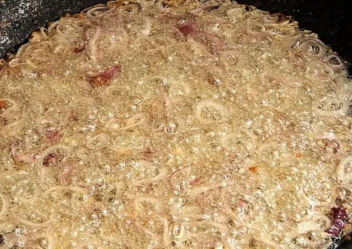 1. Heat the cooking oil in a wok. Fry the shallots over low medium heat until golden brown.